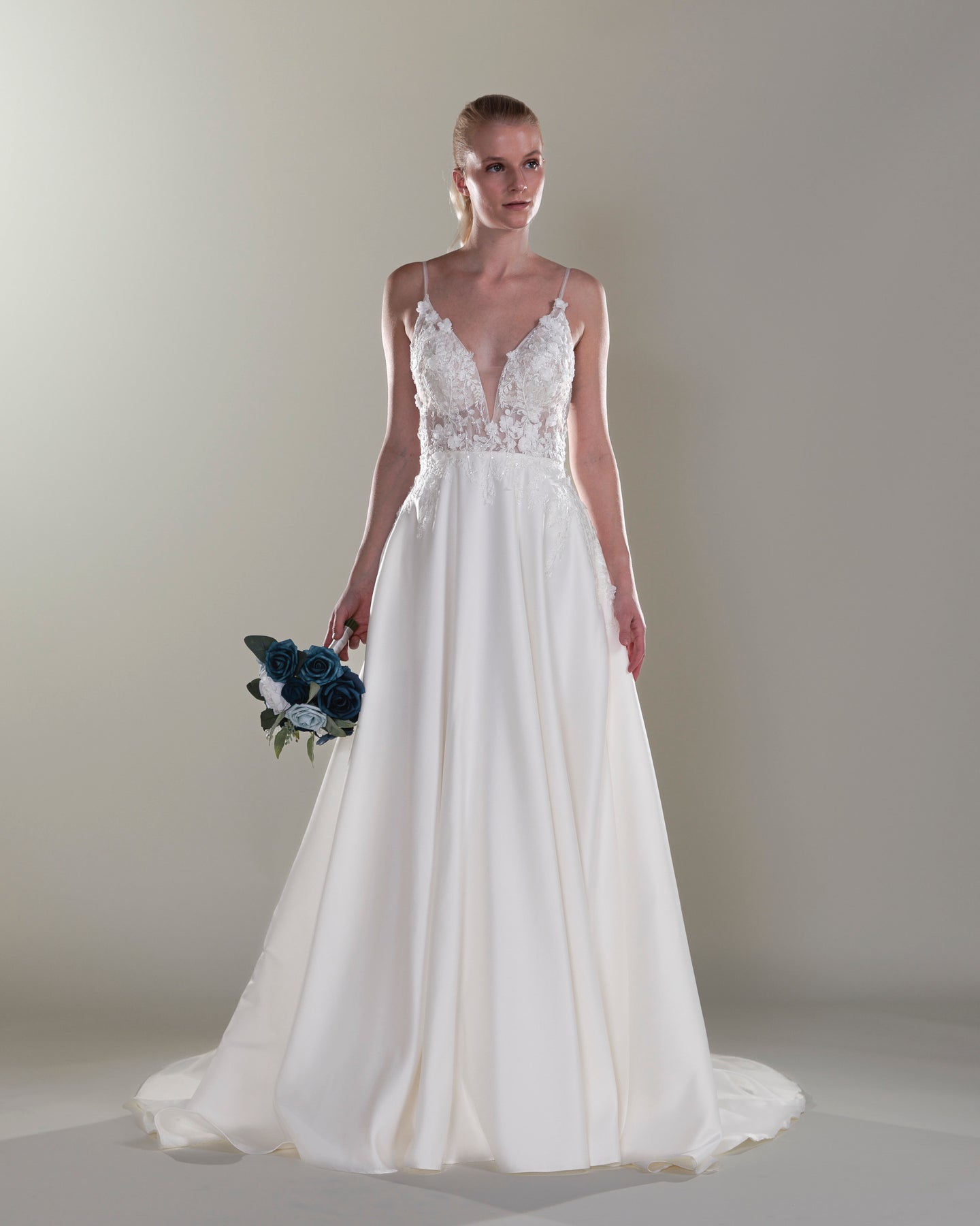 Tags: A-line       Beaded       Bridal dress       Court train       Fitted bodice       Floral       Nude mesh       Plunging v neckline       Sample dress available       Sequins       Sleeveless       Straps       V-neckline       Zipper and hooks       Zza       Zzf