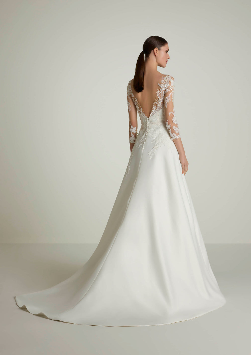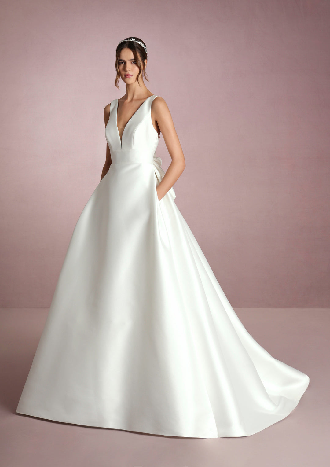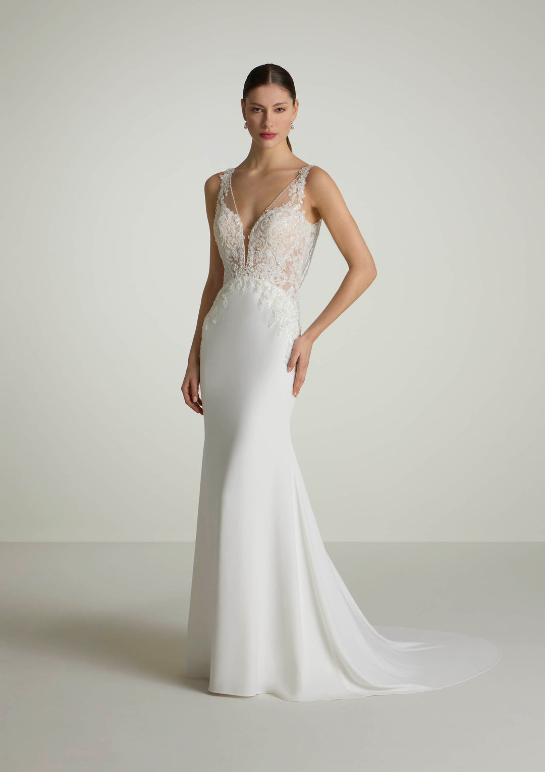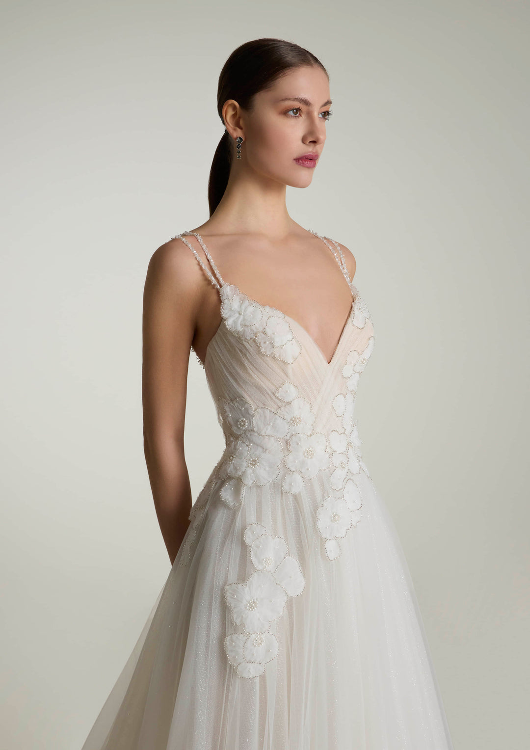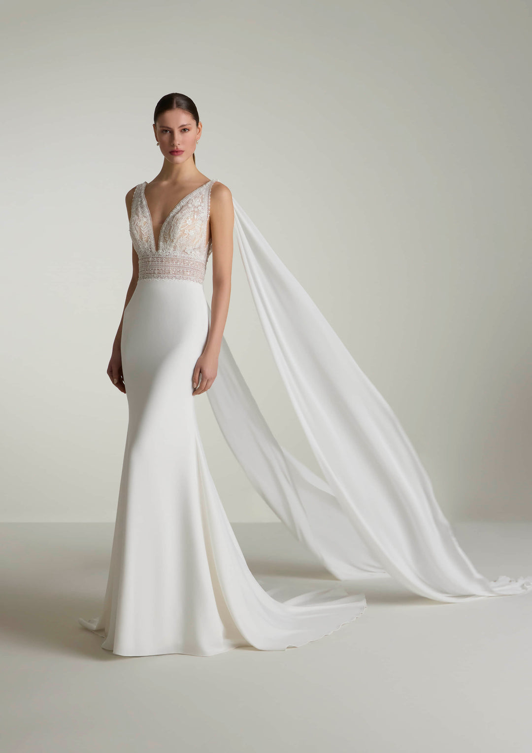 founded in Barcelona in 1922, began as a lace and silk fabrics shop. In 1964, it started designing ready-to-wear bridal dresses, making luxury bridal fashion more accessible. Over time, the brand expanded globally and acquired labels like St. Patrick and Atelier Pronovias. Known for craftsmanship, innovation, and inclusivity, Pronovias also emphasizes sustainability and ethical practices. Today, it remains a leader in bridal fashion, celebrated for its timeless designs.