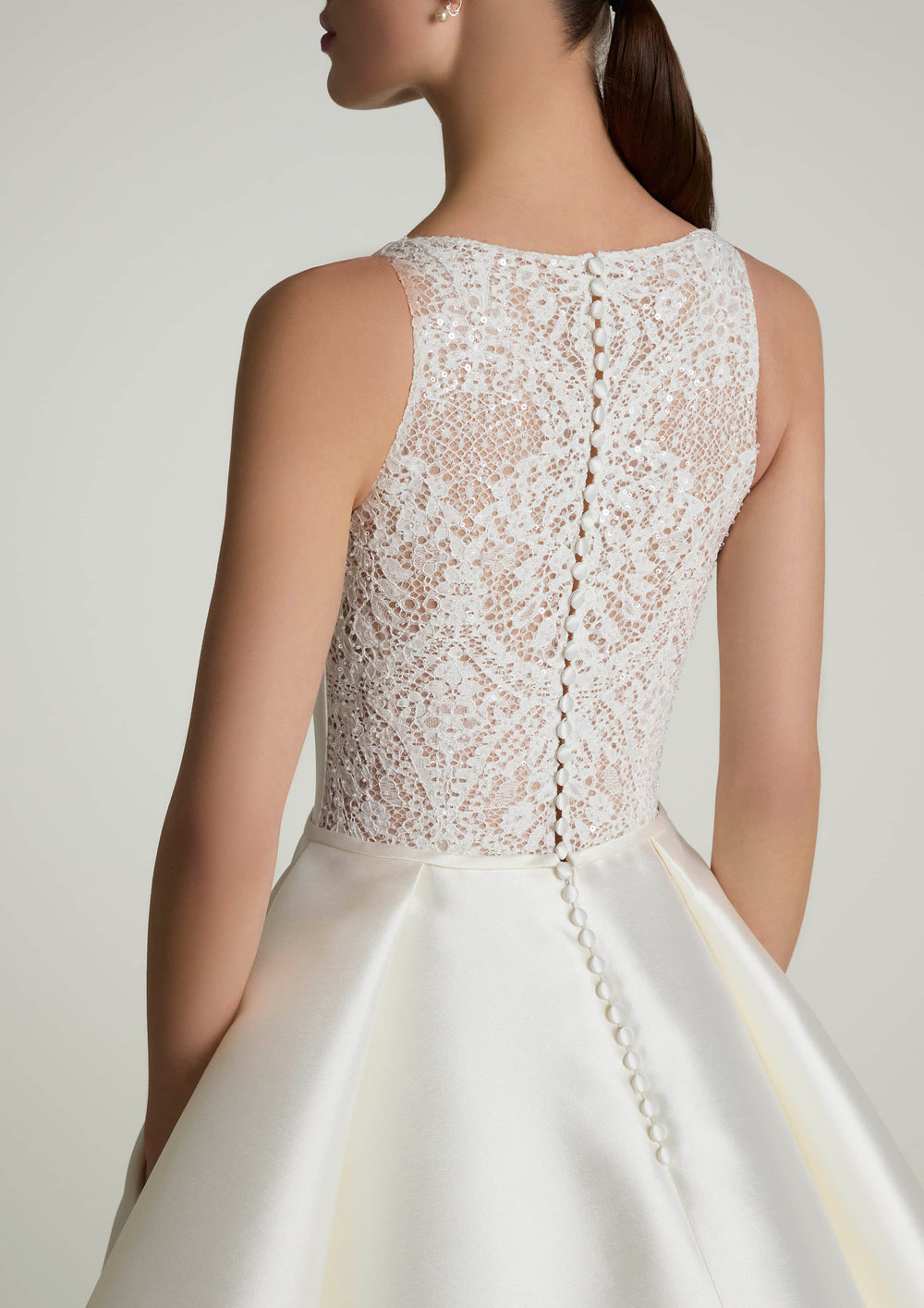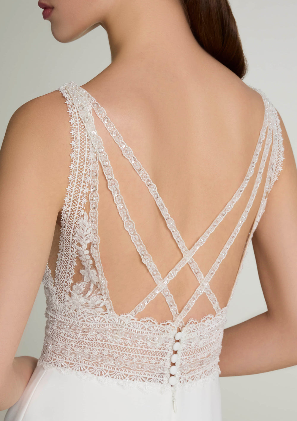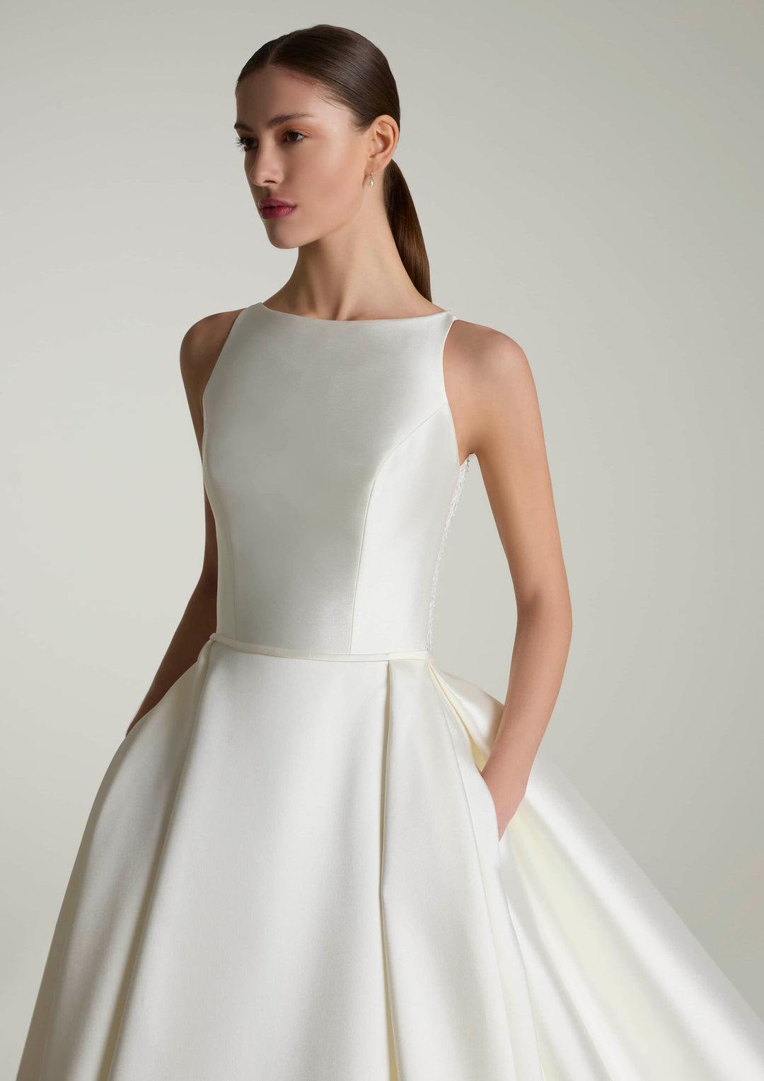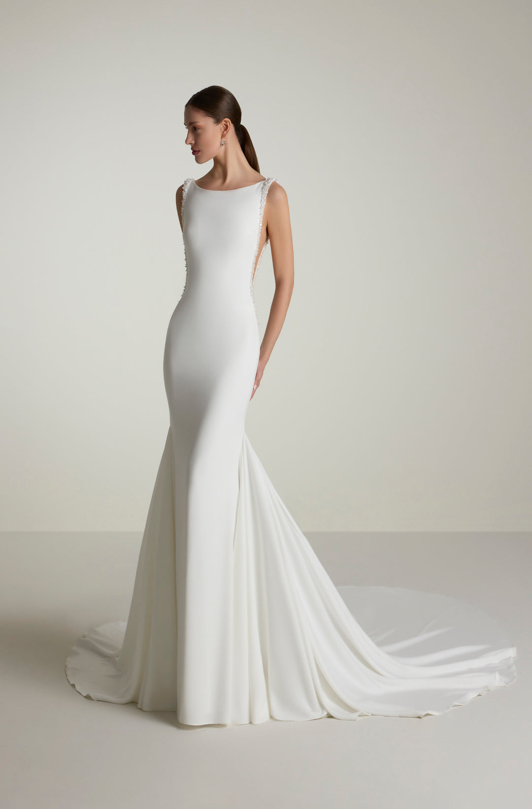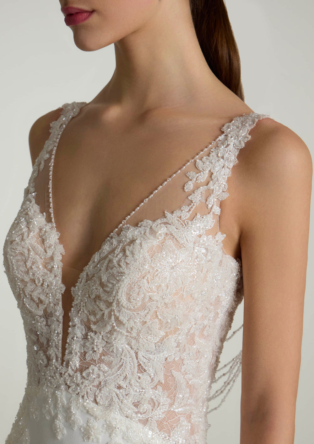 founded in Barcelona in 1922, began as a lace and silk fabrics shop. In 1964, it started designing ready-to-wear bridal dresses, making luxury bridal fashion more accessible. Over time, the brand expanded globally and acquired labels like St. Patrick and Atelier Pronovias. Known for craftsmanship, innovation, and inclusivity, Pronovias also emphasizes sustainability and ethical practices. Today, it remains a leader in bridal fashion, celebrated for its timeless designs.