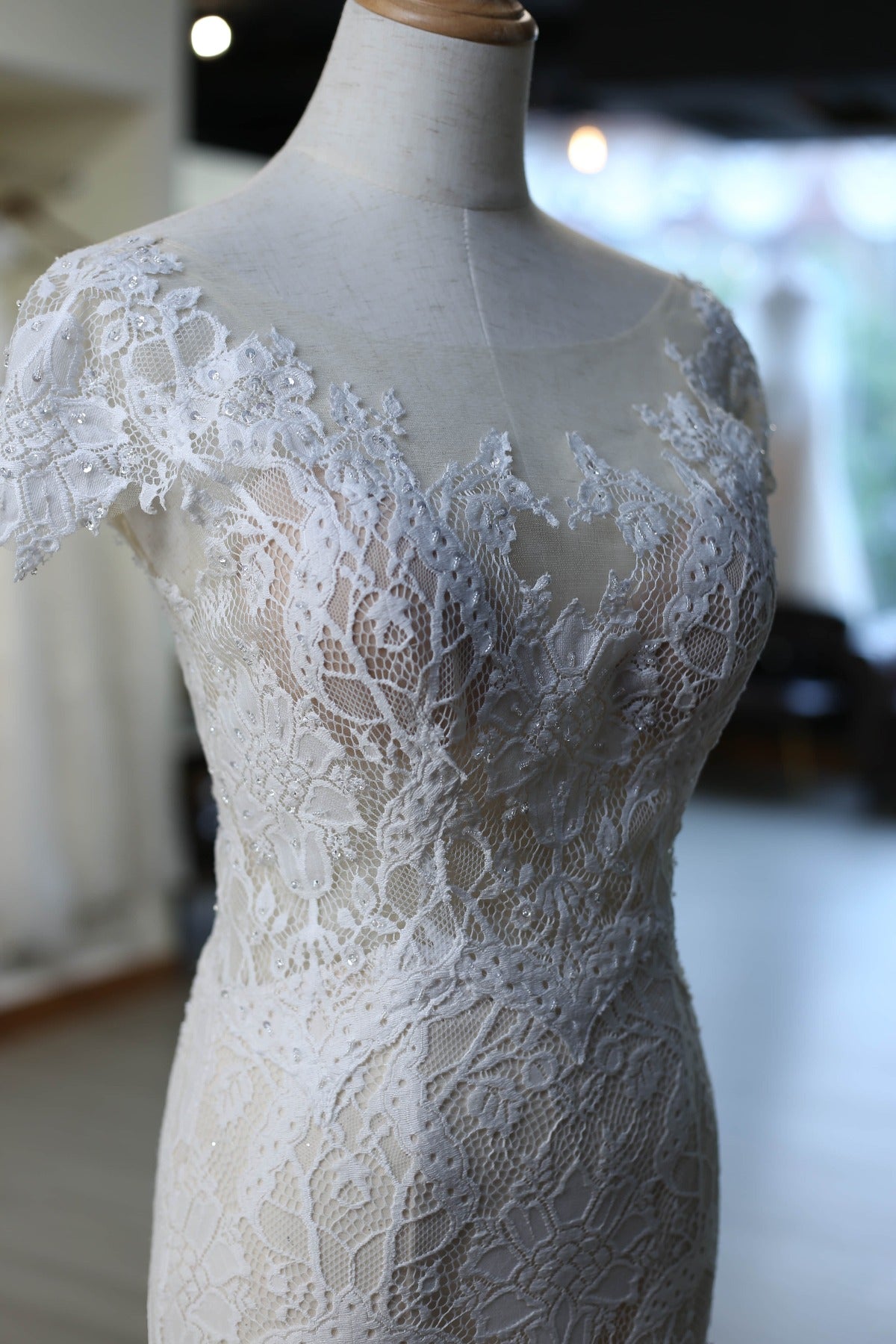 Tags: A-line       Beaded       Bridal dress       Floral       Round neckline       Sample dress available       Sample sale       Sheath       V-shaped back       Zipper and hooks       Zzb