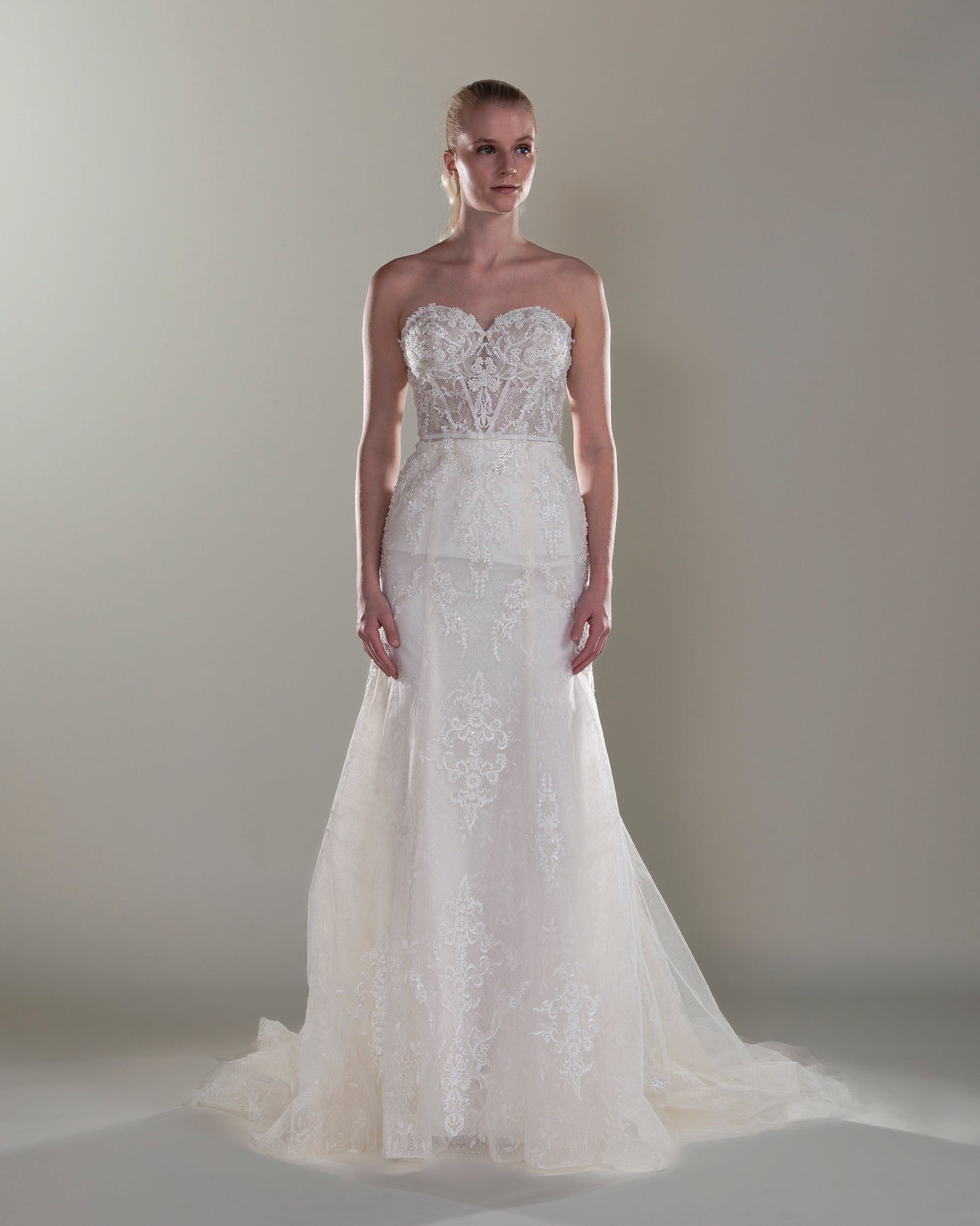 Tags: Beaded       Bridal dress       Floral       Sample dress available       Sheath       Strapless       Sweetheart neckline       Tulle       Zipper and hooks       Zzb